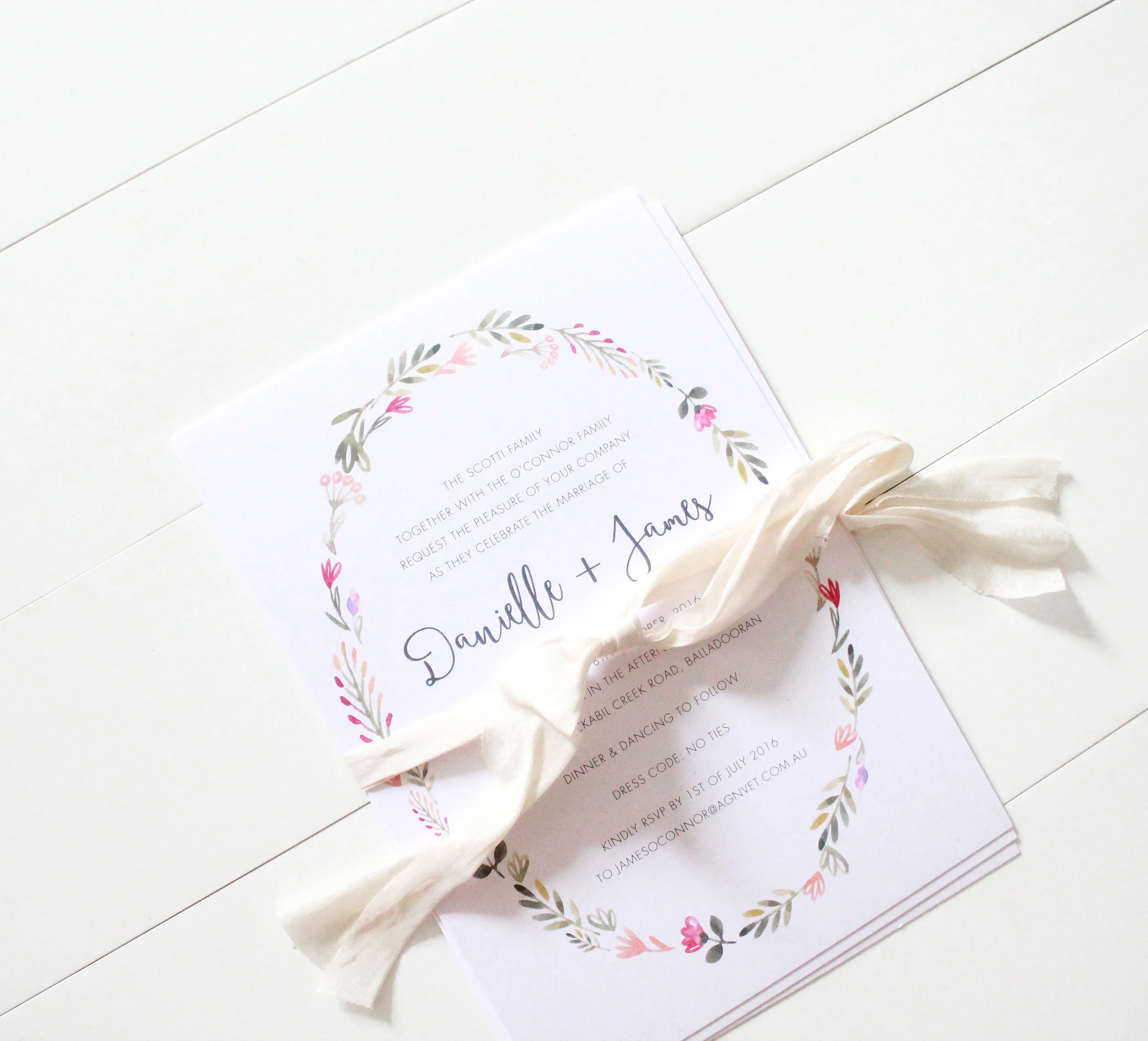 A whimsical and romantic mix of watercoloured florals and wreaths. Perfect for a garden theme, outdoor wedding or any floral lover.
